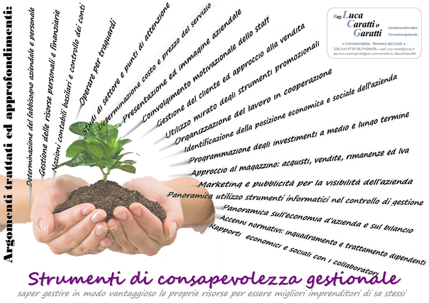 Essere consapevoli di saper gestire la propria attività, significa riuscire a dirigere la nostra azienda in cui tanto abbiamo investito in termini di risorse e fatica, verso un determinato e ben preciso obbiettivo.